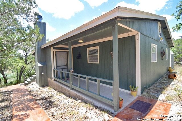 QUICK MOVE IN!What an amazing retreat right next to the River! This comfy 2 bedroom 1 bath features a large screened in Porch. Inside is a welcoming open floor plan with a fireplace! Washer and Dryer are included. Built in BBQ pit & picnic area. Cliff seating overlooking the River below. Close to 281. This is the escape you've been looking for!