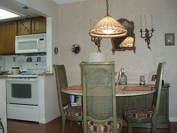 Desirable end unit townhome, very clean with one car garage which provides private entrance to home. Two generous bedrooms, nicely upgraded full bath and half bath. Upstairs laundry area, fireplace and central A/C. Backyard opens into grassy common area. Refrigerator included in sale.