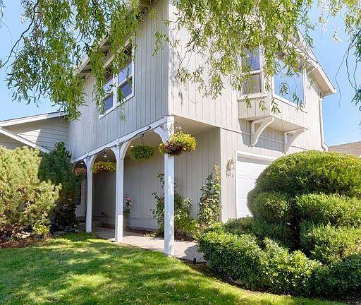 Great family home with 4 bedrooms, 3 baths including 2 main suites. Open floor plan with vaulted ceilings, gas heat and heat pump for air. Kid friendly cul-de-sac street location and easy access to town. Close to he sport park with fishing ponds and the Rogue River, baseball and soccer fields. Mature yard landscaping with a large covered patio in a private back yard. Room for a home office if needed.