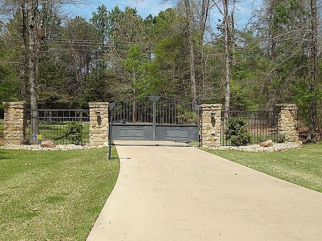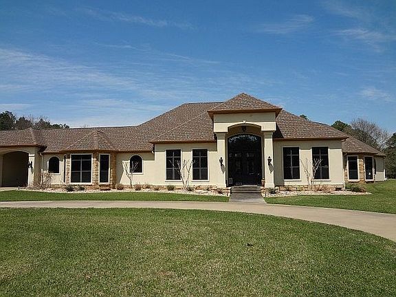 This home will take your breath away! Tastefully designed in Mediterranean style (stucco and rock and interior stained stucco, paint) with lots of open space inside for entertaining large groups or intimate friends. High quality in every aspect, and with a natural look and feel. Large banks of windows look onto beautiful landscaped pool & native woods beyond - brings the outdoors inside. Hand-hewn columns, heavy trim woodwork, beautiful wrought-iron décor front door, hard tile floors (con't)