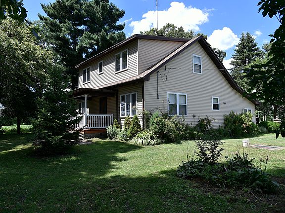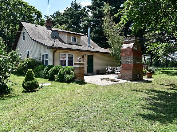 Beautifully renovated 2 story 5 bedroom farm house with 18 acres(11 Tillable), large barn, 2 machine sheds, chicken coop, large shed,& patio area with outdoor fireplace. Newer electrical, plumbing, windows, siding, roof, furnace, C/A, wonderful kitchen with lots of quality cabinetry & granite counter tops newer baths. Large open living/dining area with 9' tray ceilings, beautiful hardwood floors & impressive fireplaces, bright & airy sun room with fireplace, main floor laundry, full bath & bedroom. Currently fenced for cattle, 2 water pumps, apple, peach & plum trees. Secondary wood burning furnace.