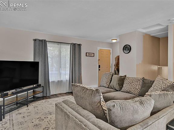 Newly updated 3-bedroom home backing to a beautiful park and open space with towering trees, and offering a sunlight-filled open floor plan, rich vinyl plank flooring, oversized windows, multiple living and dining areas, inviting kitchen with stainless steel appliances including a French 4-door refrigerator, upper level master bedroom with oversized closet, central air conditioning, pet friendly fenced rear yard with a large patio, and tremendous panoramic Cheyenne Mountain and Front Range views! Large shade trees and a tiled entry welcome you inside to open living and dining areas with polished vinyl plank flooring and oversized windows. The inviting kitchen offers all stainless steel appliances, pantry, and a counter bar for casual dining. Glass sliding doors in the nearby dining area open to the rear patio and fenced yard with plenty of space for barbequing and enjoying the beautiful views of the park behind and Colorado mountain vistas. The upper-level master bedroom has triple closet doors and windows framing sunsets over the Front Range. An additional spacious upper-level bedroom and full hall bath offer plenty of family space. The professionally finished lower level features a 2nd living/family room, laundry with an included washer and dryer, and a tucked-away bedroom with a full bath providing quiet privacy for family and guests. Additional home features include off-street parking, new paint, newer roof as of 2019 and an excellent location backing to a park and near schools, shopping, and restaurants.