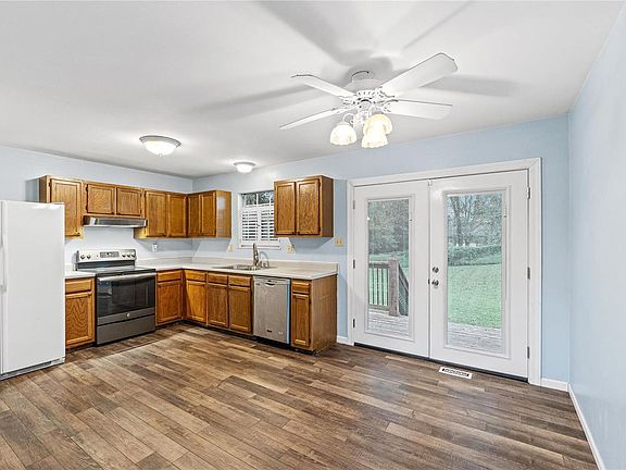 This charming split-level residence offers a perfect blend of comfort & style, featuring a spacious, level fenced-in yard with a deck & patio—ideal for outdoor entertaining & relaxation. As you enter, you'll be greeted by luxury vinyl flooring that flows seamlessly throughout the common living areas. The open & inviting living room effortlessly connects to the eating area & kitchen, creating a harmonious space. French doors from the kitchen & adjacent eating area lead out to the deck. The primary suite is a serene retreat, boasting a walk-in closet & a private full bath with a shower. 2 additional bedrooms & a full bath complete the main living level. The lower level is designed for enjoyment, featuring a cozy family room with a wood-burning fireplace, a convenient wet bar, & a half bath. Additional highlights include new carpeting throughout, an oversized 2-car garage, a new roof scheduled for installation prior to closing, & more.
