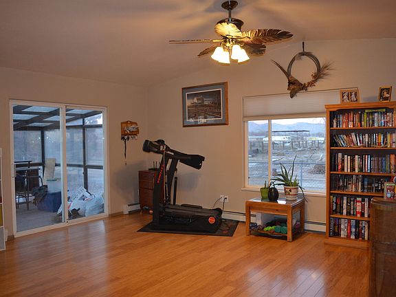 Super nice, updated house with stranded bamboo wood floor. Ranch style home has a large courtyard entry with private hot tub. Kitchen is updated with newer cabinets, tile floor, stainless steel appliances, breakfast bar, special lighting. Formal dining room opens to back patio and sunroom. Xeriscape back yard with sprinklers. Beautiful horse property. Large riding arena, four stall horse barn with large runs complete with tack room, office/kitchenette with instahot water, lights and fans in every stall, work room and work area in loft. Rainwater management to private pond with pump to irrigate established garden area next to fire pit and horseshoe pit. Hay shed tall enough for commercial stacker to stack hay. Outside 2 stall run-in horse side barn with storage room and electricity. Automatic waters throughout the property. Cattle handling system with two cattle loafing sheds and two feed bunks. Equipment shed and covered area for trailer parking. Approximately 6 irrigated acres of grass alfalfa hay that was newly overseeded with grass fall of 2021. The hay field includes gated pipe and produces about 800 bales of hay per year. A chicken house completes the perfect small farm. All information is deemed reliable but not guaranteed.