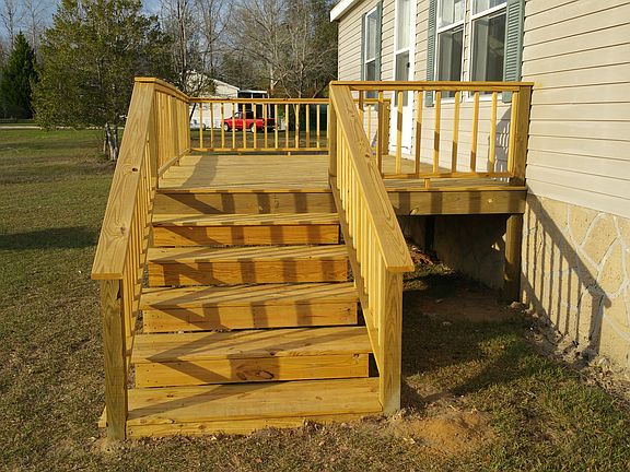 Very well maintained 3/2 with all appliances. Like new inside and outside, stucco skirting, 10 ft X 16 ft front porch, 14 ft X 30 ft back deck. 1/2 acre lot all grass with view of a pond, several shade trees in the back yard, city water and sewerage.