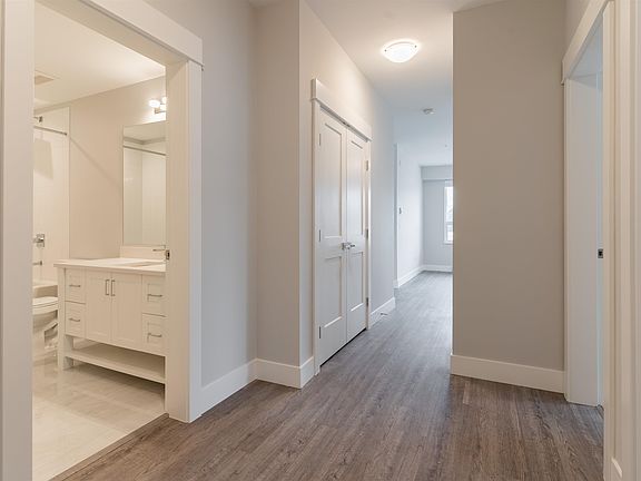 This amazing home is located in the heart of POCO! A 3bed 2bath, 1058sqft corner unit with a thoughtfully designed floor plan which includes a large laundry rm, 2 balcony's with beautiful mountain views from the bright and spacious kitchen/living area. The kitchen features top of the line s.s appliances, quartz counter tops, and full hight soft close cabinetry. Also featuring high-end laminate flooring throughout, with tile flooring baths, and lush carpet the beds. The master has a large walk through closet, and a spa like en-suite with heated floors. Montrose Square is connected to POCO's brand new Rec center. Located in the perfect for a walkable lifestyle. Close to restaurants, shopping, and just across the street from the West Coast Express for quick train ride downtown.