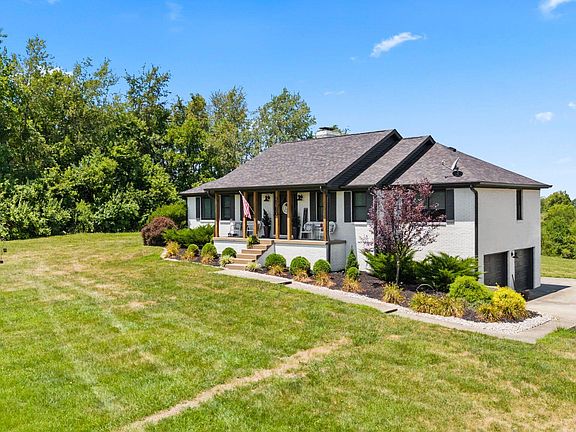 Breathtaking complete remodel on 7.9 acres, just 3 miles from EKU! This stunning 3-bedroom, 3-bath ranch sits on a finished basement, offering a perfect blend of modern upgrades and serene outdoor living. The interior features engineered hardwood floors throughout, a custom-designed kitchen with granite countertops, a butcher block island, and a spacious pantry. The main-level primary bedroom includes a luxurious ensuite with a double vanity and walk-in shower. Two additional bedrooms on main level with split bedroom design. Enjoy a seasoned patio room overlooking the private, expansive lawn. The basement boasts tiled floors, a large rec room, and a convenient laundry area. Roof and Hvac under 4 years old. No restrictions. Check out this modern ranch home with all the amenities to include a country setting with city convenience!