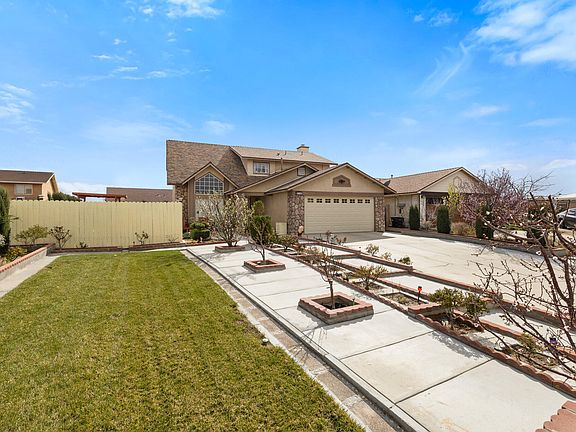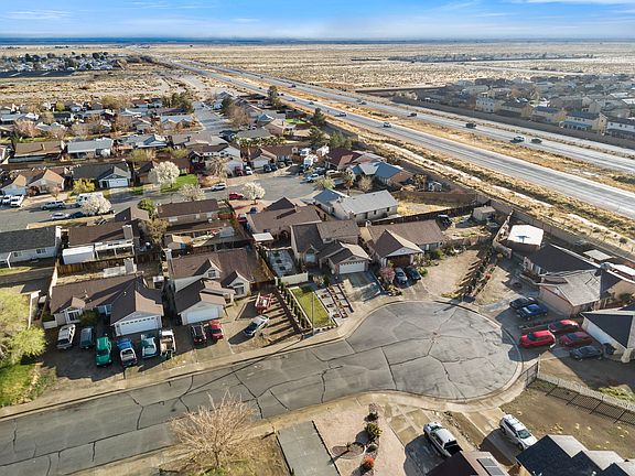 Come see this cul-de-sac home located in a quiet residential neighborhood close to freeways, schools, shopping, and Edwards Air Force Base. This home features over 1600 sq/ft of living space 3beds + 2 1/2 baths, with all bedrooms upstairs. Master bedroom features a walk-in closet and dual bathroom sinks. Enjoy the view of the high cathedral ceilings in the living room, a formal dining room & a family room with a gas fireplace for the winter days. Kitchen offers lots of counter space, cabinets, stainless steel appliances and a breakfast bar. Laundry room is located downstairs with hookups and cabinets. Home offers an attached 2-car garage with a long driveway, a covered patio with concrete slab, lots of concrete throughout back and side yards and multiple planters with pine trees, roses and other plants in front and backyards. HURRY, COME SEE IT NOW BEFORE ITS TOO LATE!