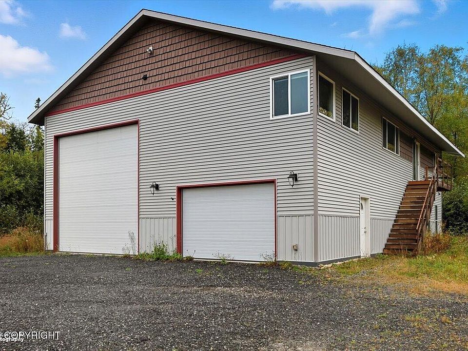 This massive 2400sq ft 40x60 ft garage & well-maintained 4-bedroom, 1.75 bath home offers the perfect blend of space and functionality. The home features a spacious layout with 2349sq foot of living space. Open-concept kitchen & living room, vaulted ceilings, stainless steel appliances, LVP, natural gas, a custom shower stall, 2-Bidets, walk-in closets & generously sized bedrooms....Baseboard heat throughout & in floor heat in both bathrooms. 2 garage doors, including one 16x16 door, making this perfect for larger equipment, boats, trucks or those Alaskan toys! Partial Mountain View & Opportunity to build equity!! Call For a Showing or Additional Details