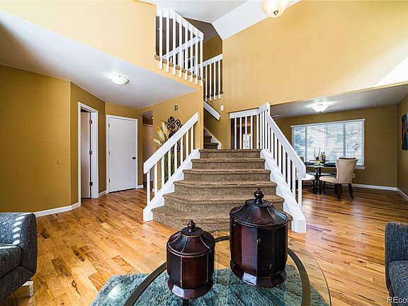 Look at this gorgeous open foyer entry of the home with an elegant staircase! Well maintained 5-bedroom & 4-bathroom home in the well desired Cherry Creek 5 School District of Peoria Park with low Community fees (only $20.00 per year)! Stainless steel appliances & granite countertop in kitchen. The large loft upstairs is perfect for a home office or play area. Wooden floors on the main floor have been recently resurfaced/polished. Newer interior paint throughout. Water heater installed last year. Seller offers 1-year Home Warranty for Buyer. Great location! Close to 9-mile light rail, Cherry Creek Reservoir & shopping!