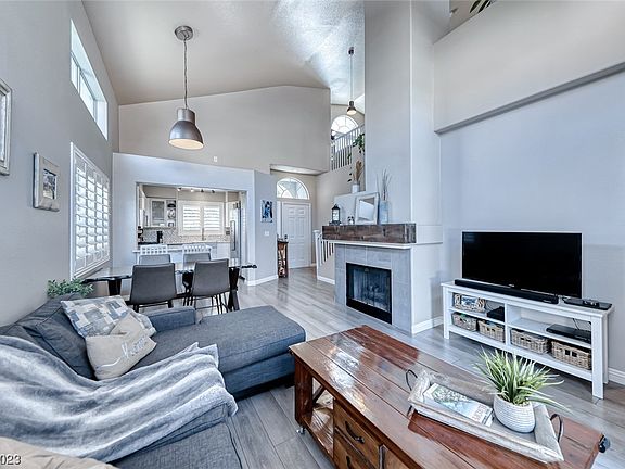 Welcome to 2180 Sgt Peppers Court, a charming and upgraded home located in the highly sought-after community of Green Valley. Step inside and be greeted by the impressive vaulted ceiling in the family room, which creates a bright and airy atmosphere. The well-appointed kitchen features sleek, modern white cabinetry, stainless steel appliances & quartz countertops with waterfall edge. The primary bedroom suite with renovated bathroom is conveniently located on the main level. Upstairs, you'll find a spacious loft area that's perfect for a home office, workout space, or play area. This well-designed space also offers an additional bedroom and bathroom upstairs. Outside, you'll love the private backyard with twinkling string lights over the patio as well as artificial turf in the side yard. The community pool offers the perfect spot to cool off on hot summer days. And with low maintenance living, you'll have plenty of time to enjoy all the great amenities that Henderson has to offer.