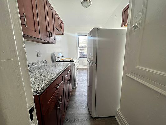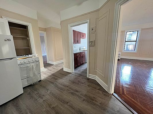 Large 1 bedroom apartment with separate sit in kitchen ! Large living space && HUGEEEE walk in CLOSET SPACE . Rent includes heat & water 3 blocks away from the train !! the building is located a few blocks away from street where you have tons of options from shopping, to eating, or you can wine and dine at local restaurants, and bars Small pets ok , live in super . Minimum income 80k, must have good credit .