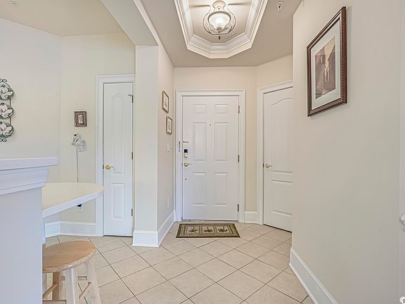 Welcome to your dream home in this exclusive gated community located on the Intracoastal Waterway, offering the resort lifestyle at Edgewater in Barefoot Landing. This stunning property features amazing waterway views from the living areas and both bedrooms, providing you with a serene and tranquil atmosphere. As you step into the property, you are greeted by an expansive kitchen that offers plenty of counter and cabinet space, perfect for entertaining guests or preparing your favorite meal. The master bedroom features two spacious closets and a luxurious bathroom that comes complete with a whirlpool tub, shower, and separate vanities. Take in the breathtaking view as you relax on the screened porch, a perfect spot for a cup of coffee or to unwind after a long day. Being on the top floor of the building allows for vaulted ceilings and there are no noisy neighbors above you. This unit is being sold fully furnished and comes with two storage units, one on the same floor and the other one on the garage level, providing you with ample space to store your belongings. The building has an extra layer of privacy by requiring a code to gain entry. Edgewater amenities are located beside of this building which includes a clubhouse, gym, pool, day docks, and a boardwalk. The HOA fees cover building insurance, cable, internet, water/sewer, and pest control. Barefoot Resort amenities include a shuttle service to the oceanfront cabana during the season, miles of biking and walking trails, a huge pool on the waterway, and 4 World Class golf courses; Norman, Fazio, Love & Dye. This location provides you with convenient access to Highways 31, 22, 17 Bypass and 17 Business, offering you close proximity to all the attractions and amenities of North Myrtle Beach, including fine dining, world-class entertainment, and ample shopping experiences. Rest easy knowing that you are only a short drive away from medical centers, doctors’ offices, pharmacies, banks, post offices, and grocery stores. Please note that HOA information has been provided to the best of our ability and all information should be verified and approved by the buyer. The square footage is approximate and not guaranteed, and the buyer is responsible for verification.