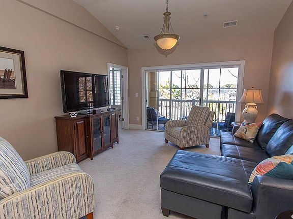 Beautifull furnished top floor condo in the luxury gated Edgewater development in Barefoot. Decorated in elegant style it is move in ready just bring your personal items. This floor plan has a wonderful galley kitchen with loads of storage. The living room is specious with a vaulted ceiling. Both bedrooms are great sizes as well as having nice closets. All rooms have views of the Golf Course. The condo has an open feeling. Edgewater has a clubhouse, Olympic sized pool, gym and hot tub located directly on the intracoastal waterway. There is a walking trail along the waterway to watch the boats go by. As part of Barefoot you also get access to the private 3 story oceanfront cabana with gated parking for cars and golf carts reserved for owners only. With Expansive views of the Greg Norman Golf Course 15th hole from every room the views are wonderful. The condo also comes with a climate-controlled storage room just steps from your front door as well as a garage storage room for your beach toys. There is assigned parking in the garage located on the first floor of the building for your car or golf cart. Drive your golf cart to all Barefoot Resort & Golf offers 4 golf courses, 2 golf clubhouses, on site restaurants, a practice range, walking trails and the beach cabana. This location is just minutes to Barefoot Landing, the Beach, Restaurants, Theatres, Shops and all North Myrtle Beach has to offer