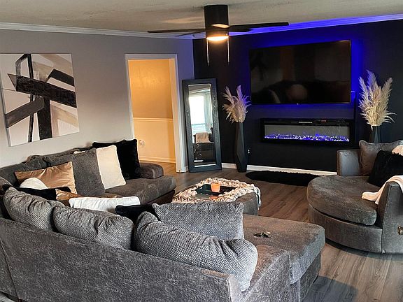 - Features: Bay WDW, Ceiling Fan(s), Crown Molding, Fireplace, Laminate Floor