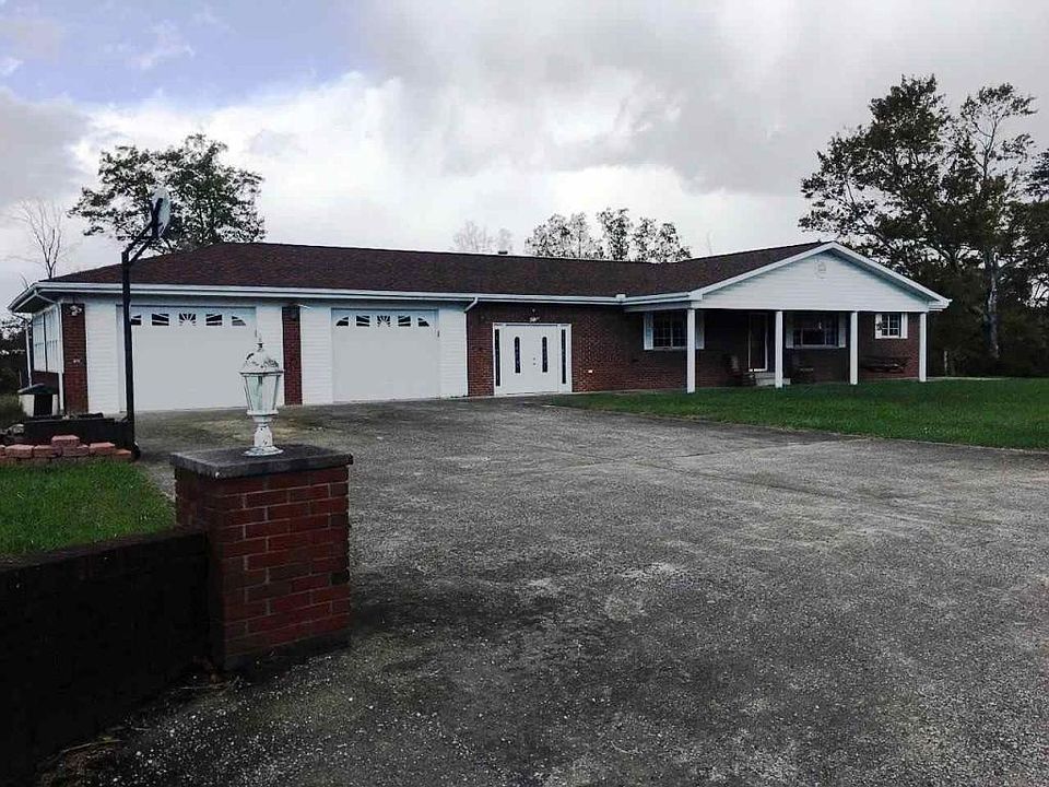 Looking for beautiful large lot aprox. 6.38 acres with brick ranch, large kitchen, full unfinished basement, new roof? This is it! Hot tub, mower and pool table remains. Oversized 2+car garage, workshop, porch. Property could be subdivided.
