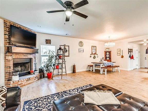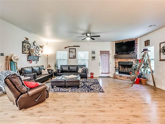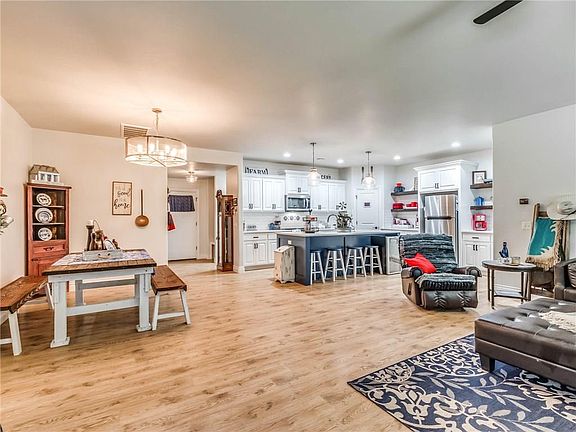 Welcome Home! Bring your horses, cows, goats or chickens! Country living close to the city. This 3 bed 2 bath has an amazing living and kitchen area that will give you the open concept you have been looking for. Located in Harrah Schools only minutes from I-40, this house is in a pristine location. The farmhouse feel is designed for comfortable living as you enjoy the beautiful all wood style flooring in the living and kitchen area, large open island, and dining area that gives access to the outdoor covered patio. The master bedroom offers a large walk in bathroom with dual sink vanity with a large walk in closet. Oh and we can't forget the spacious mud /laundry room.