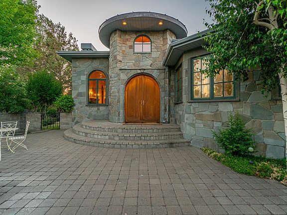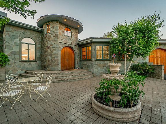 Single level, European-inspired home blends modern elegance with Old World charm and features a Telluride stone exterior and exquisite design elements including arched windows, concrete and rough-hewn flooring,
