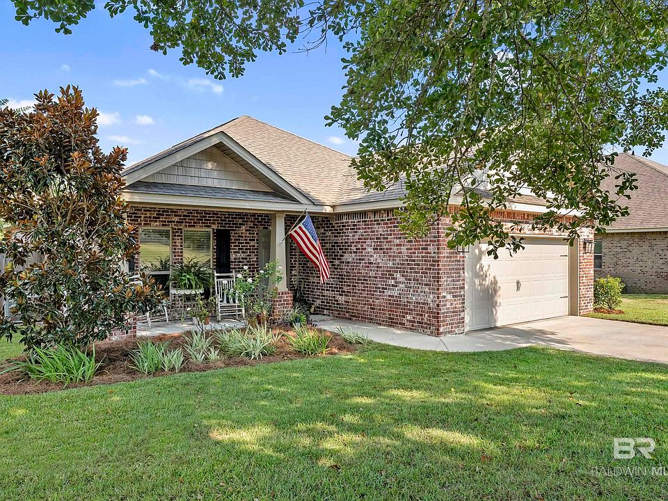 Welcome! This home boasts a variety of desired qualities, rare for this neighborhood, including a large oak tree in front yard, lending plenty of shade, situated on a 0.27 acre lot, a gas range with stainless range hood & a wood-burning fireplace with custom brick hearth & wooden mantle & an OPEN, UNOBSTRUCTED VIEW OF NATURE FROM LIVING ROOM, DINING ROOM & PRIMARY BEDROOM WINDOWS as there are NO BACKDOOR NEIGHBORS BEHIND HOME! Home is located in Phase 1 of neighborhood, with mature landscaping & boasts extra-wide, one-way streets, divided by an oak tree-lined median, just down the street from 1 of the 2 neighborhood pools & playgrounds. Fairhope Falls has a beautiful country feel, while still being just a quick drive away from Downtown Fairhope. Neighborhood has nature trails along Fish River, with multiple access points for fishing or relaxing on the shady, sandy areas through the woods. There are also 3 stocked fishing ponds. Additional updates to home include a new Bosch dishwasher, kitchen faucet & disposal, updated lighting in foyer, main living areas & primary bathroom, updated outdoor sconces, ceiling fan & market lights on back porch & deck, updated mirror in second bathroom, custom shelving in second bedroom & overhead storage shelving in garage. Home is the Isabella plan, with nearly 2,000 SF, 4 bedrooms, 2 bathrooms, is gold fortified & well-maintained. Home has a very large, elevated back deck that extends beyond the covered back porch, perfect for enjoying private outdoor living, grilling & dining. The back yard has mature crepe myrtles & hydrangeas & a wooden playhouse. Kitchen fridge and both TVs (living room & back porch) will convey with sale. Seller is licensed real estate agent- *SELLER CONCESSIONS* AVAILABLE WITH ACCEPTABLE OFFER! Buyer to verify all information during due diligence.