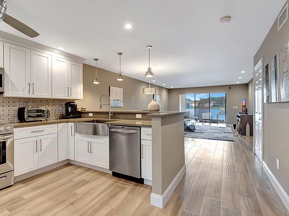 Beautifully updated home.Kitchen has quartz counter tops and porcelain tile on the floor. Each room is updated with beautiful porcelain tile, comforters, pictures on the walls and beautiful furniture.Gorgeous lake view with a den area.Come in and see and it's yours.Golf, tennis, community room, dining, pool and grand ballroom is available.