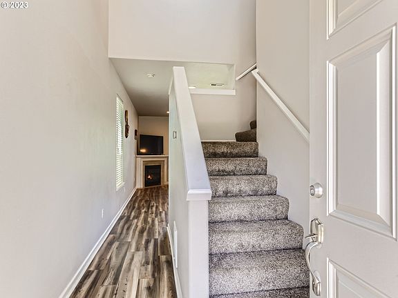 This beautifully updated end unit townhome in Fairview Terrace gated community has fabulous views of the greenspace and forest located behind the home. The open concept living room and kitchen features new flooring, updated half bath, gas fireplace and a sliding door to the covered back patio and garden area. The bright and spacious updated kitchen offers a large island, slab stone countertops, stainless steel appliances (including refrigerator), pantry, dining area, and built-in bar. The attached two-car garage offers built-in storage racks. Upstairs with three bedrooms with a large bonus room and a beautifully updated hall bathroom with tile shower. The generous primary suite has its own private balcony, spacious walk-in closet, double sinks, soaking tub and walk-in shower. Ceiling fans are installed throughout both main and upper levels. Fairview Terrace community amenities include, pool, hot tub, clubhouse, fitness center, park, athletic court, exterior and grounds maintenance. New water heater in 2021, HOA replaced roof in 2022. Easy access to highway I-84.