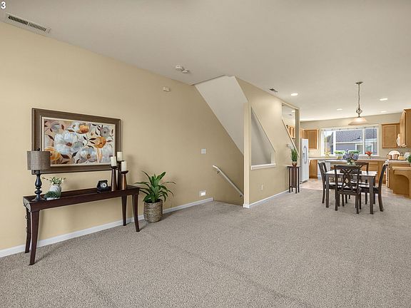 Located in the desirable fairview Terr gated community and backs to community grounds. New carpets, flooring and fresh paint throughout. Bonus room on the lower level with a 1/2 bath with an exterior door to the back patio and greenspace. Good sized bedrooms. Easy freeway access and close to Blue Lake Park. Plenty of guest parking. Move in ready and at a great price!