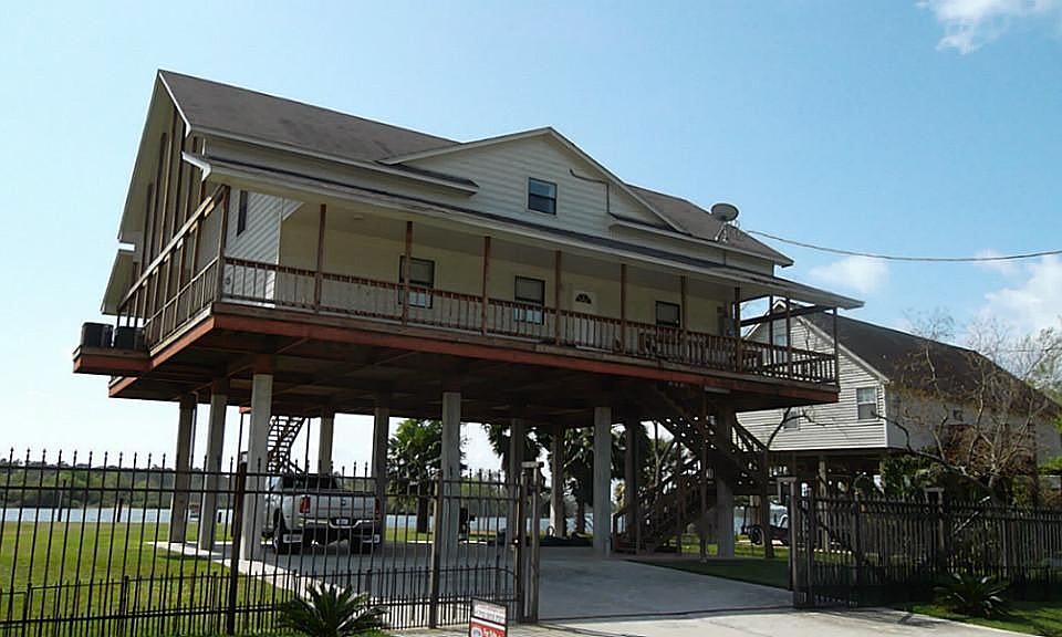 If you want waterfront,this is it.Well built, clean & spacious. Beautiful property,fish from your back yard. All fenced with an iron gate across the front.Porch all around. Built on steel and concrete beams for stability.Double pane windows,lovely river views.Built in range top and oven,disposal & dishwasher.Huge rooms with many extras throughout.Oversize lot(1& 1/2 lots).Big island in kitchen.Kitchen,a must see.Lots of custom cabinets.Huge utility room.Lots of built ins.One of a kind!!!
