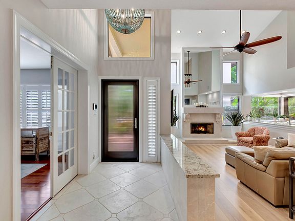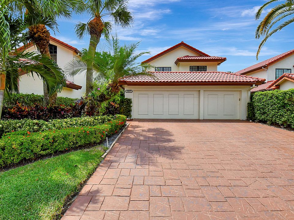 Located in Town Place Club Villas in the heart of Boca Raton, this gorgeous 4 bedroom 3 bath home with 3 car garage is an opportunity you won't want to miss! The desirable open floor plan found on the first floor features soaring ceilings, formal living & dining rooms, working fireplace & guest bedroom with full bath. Designed with entertaining in mind you'll love the gourmet-style kitchen & separate bar with granite counters, 2 beverage coolers, stainless appliances & plenty of storage. The living area upstairs decorated with new wood floors features 3 skylights allowing an abundance of natural light between the spacious primary suite on one side and 2 guest bedrooms and full bath on the other. The professionally landscaped private patio with heated pool and oversized awning provide the indoor/outdoor living space you've been searching for! Other highlights include new impact windows and doors, plantation shutters, pool heater, patio awning and upstairs wood flooring.