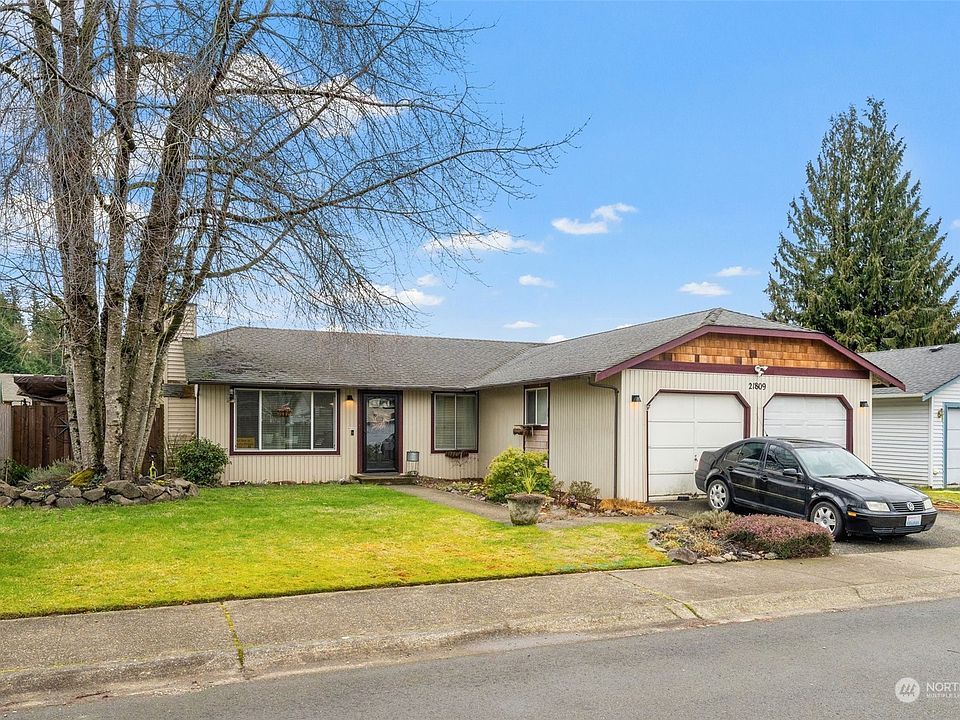 Welcome home to this quaint rambler with an easy floor plan in the highly desired Wilderness Village Estates in Maple Valley. This home is the perfect starter home or investment property. Featuring three bedrooms, two baths a dining area and a cozy living room with a fireplace. Current owner installed a heat pump for easy heating and cooling, The large fenced back yard has a beautifully built deck and a designated space for campfires and fun. There is a two car garage and a shed that stays with the property. This home sits on a quiet dead end street in an ideal location that is tucked away yet close to everything. Bonus no HOA! Put in a little sweat equity, cosmetic updates and watch this home shine.