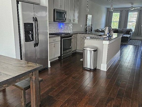 This beautiful furnished 2 bedroom, 2.5 bath townhouse is the perfect place to relax and enjoy the good life. This tree lined community is complete with a dog park, swimming pool, tennis court, playground, garages and much more. The two bedrooms are located upstairs with private baths and entrances. The staircase over looks the open fully equpit kitchen and spacious living room. Complete with two balconies. Park your car safely and conveniently inside your private two-car garage with plenty of additional storage. Beware. For this reason, all of our properties have live cameras and alarms. Instructions will be given to you prior to your viewing. If you are asked to pay cash to anyone, you are being scammed. Dishwasher, Disposal, Gas Stove, Granite Countertops, Oven, Pantry, Refrigerator, Ceramic Tile, Hardwood, Breakfast Nook, Air Conditioning, Blinds, Ceiling Fan, Drapes, Dryer, Electric Heat, Garage, Garden Tub, Handrails, Playground, Security System, Storage, Tennis Courts, Walk In Closet(s), Washer, Window Coverings, Deck / Balcony, Landscaping, Swimming Pool, Clubhouse, Community Pool, Tennis & Pet Friendly.
