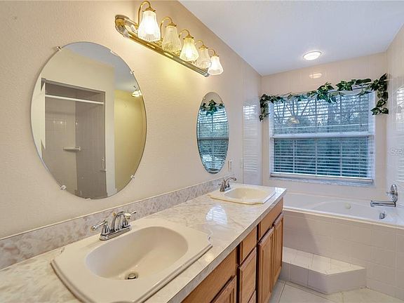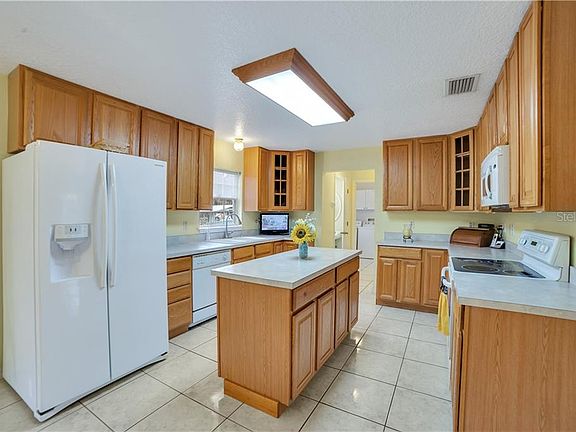 Single home seeking long term relationship! Are you in the market for a home with a northern appeal but located in sunny Florida! This is it! This 2112 square foot home has all the right rooms. The kitchen has 42" cabinets, and island with storage galore. "I want to make sure it has a formal dining room" well you got it! You will have a formal dining room and living room you desire, along with an eat-in-kitchen nook AND a family room! Get toasty in front of the brick, wood burning fireplace in the winter or enjoy a quiet night on the back screened in patio without the hassle of mosquitoes. Pink crape myrtles trees line the back patio for the prettiest view in the spring along with colorful camellias. You can wash dishes with a country view to calm you or take a hot jacuzzi bath and open the window to get a cool breeze while you relax. Have a puppy? There is a chain-link dog run for the puppy to enjoy the sunshine and fresh air. The lot is phenomenal in way of size and functionality. If someone wanted to add a detached garage in the back, you would still have plenty of yard left for fun. This home sits on 0.57 acre with no rear neighbor and a large front and back yard. NO HOA allows you to park your boat, RV or other recreational vehicles here (within county code of course). Corbett is a dead-end road on both sides off Belles Lane so pass by traffic is extremely low and private. The property line extends approximately 35ft into the trees at the rear of the lot. All four bedrooms are located upstairs with common area all downstairs. The master bathroom has a standing shower and a separate garden tub. The master closet is large at 5'x11' and allows all sorts of room to store your stuff! Unique features start with a laundry chute from the master bedroom down to the garage, an attic fan for home ventilation, lemon and orange trees and so much more! The roof is original from 2002 build, well pump replaced 2012, AC 2018, well tank Dec 2020, Softener and iron remover Dec 2020. This home is waiting for your phone call and offer! The following items, unfortunately, will not convey; Ring Doorbell, Bird Bath, and Clothes Line.