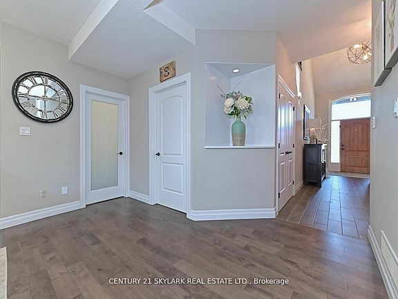 Stunning 3+1 bedroom home on a pie-shaped lot. This 2,426 square foot home, offers an oversized master bedroom with extra deep walk-in closet, make-up vanity and large ensuite with quartz countertops. The spacious modern-classic design boasts custom shelving and window coverings, a covered custom-built maintenance-free composite deck with an enormous electronic retractable awning, creating a private sunroom feel. The stunningly finished basement with additional bedroom and 3-piece bathroom is packed with upgrades including a wet bar with LED shelving, large electric fireplace and quartz countertops.