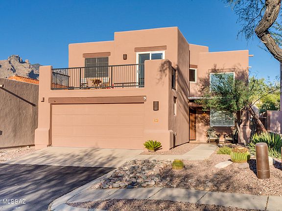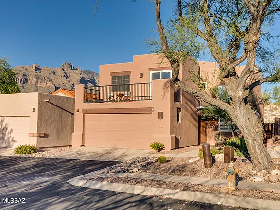 ~ $5,000 seller concessions towards buyer's mortgage interest rate buydown or buyer's closing costs with an accepted offer! ~ Welcome to Sierra Catalina Estates - prestigious gated community in heart of the beautiful Catalina Foothills and within desirable Catalina Foothills School District! This fabulous, well-maintained and updated residence has it all! It is nestled on a premium cul-de-sac lot with some of the best mountain, city and valley views Tucson has to offer. The house greets you with soaring ceilings, travertine tile (natural stone) floors, stunning see-through gas fireplace, neutral color palette and abundance of natural light. Gourmet kitchen boasts ample cherry cabinetry, granite countertops, complementary tile backsplash, pendant lighting, new high-end slate appliances and an island perfect for entertaining. Spacious master suite includes double custom closets, jetted tub, shower and breathtaking Santa Catalina Mountains vistas. Split floor plan offers lots of privacy for the most discriminating owners. Secondary bedroom has a private balcony access with mountain, valley and city views. One of the guest bedrooms is on the first floor and so is the beautifully updated hall bathroom with walk-in shower. Two car garage with finished epoxy flooring awaits your vehicles. Private backyard is beautifully landscaped with covered patio, extended seating area and mountain view. Newer hot tub with water feature and LED lighting is the cherry on top. Updates and upgrades everywhere you go - new fingerprint resistant slate kitchen appliances (2023), new dryer (2023), newer washer (2022), new water heater (2023), several newer windows, shutters and glass sliding doors, and so on. Don't miss the full list of home improvements available in the Documents section of the listing. The beautifully maintained, gated community has a large pool, spa and direct access to Orange Grove Middle School in one of the very best school districts in Southern Arizona. Less than 1 mile from La Encantada Shopping Center. Welcome home!