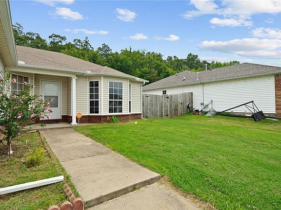 Cute home in a nice, convenient area near schools, parks and trails. This is a perfect starter home or great for an investment property. Living room has parquet wood floors, tall ceiling, gas fireplace, and tall windows for great natural light. Kitchen has plenty of cabinet space, matching appliances, pass-through window to living room and an eat-in area. Master has lots of windows, single vanity, tub/shower combo, and walk-in closet. Great privacy-fenced backyard space with storage shed and raised flower bed. Nice privacy with woods behind the home with direct access to the Fitzgerald Mountain Trailhead bike trail. Located just a few blocks from Bayyari Elementary School and Bayyari Park, and a short 2 miles to The Jones Center, Downtown Springdale, Shiloh Square, Walter Turnbow Park, restaurants, farmers markets and more! Don't miss this opportunity!