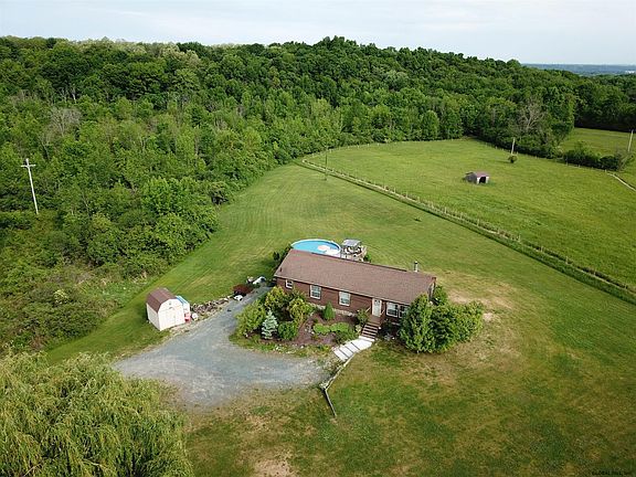 Everything you would want to enjoy country living. The perfect Ranch home that checks all the "boxes": total privacy, one floor living. Family room w/custom stone fireplace and double sliding glass doors; 1st floor master suite with large master bath w/ soaking tub. So many options in lower level -currently set up as movie/family room - could also be a possible in-law, man cave, teen cave, craft room, sky's the limit! This 8+ acre property is your own private retreat! Enjoy the beautifully landscaped yard; watch the wildlife and take a dip in the pool under the stars! Take nature walks or ride your ATV's/snowmobiles; all in your own backyard! All of this so close to the city of Albany. Only 2 miles from the new Amazon site and 7 miles from Regeneron Pharmaceuticals.