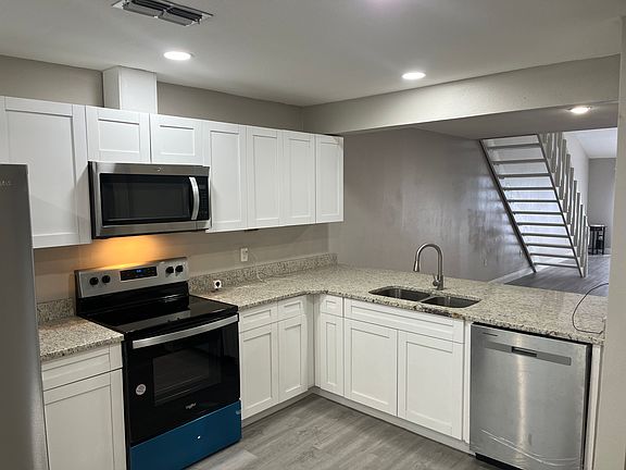 Newly renovated home located in Stonebridge Villas. New Granite Kitchen countertops, cabinets, Stainless steel appliances and new tiled bathrooms. New contemporary luxury vinyl plank flooring thought. New Windows and LED lighting. Home features a split bedroom plan with spacious loft on 2nd floor that could be used as an additional bedroom, storage or office room. The kitchen offers eat-in area, in addition to a breakfast bar. Off of the living room, walk into the spacious master bedroom which has a large walk in closet and master bathroom with walk in shower. The home also has vaulted ceilings, separate laundry room, and parking pad. Amenities include a community pool and hot tub. The property has 1392 sqft. of living space. Tenant pays for Water and Electric.