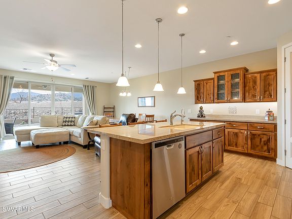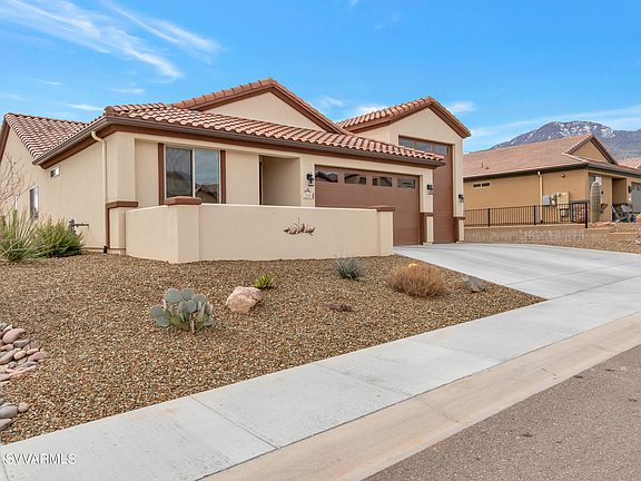 This home is too good to be true!! Have you ever wanted a luxurious, stylish, quality built home for you and all your toys & RV? Look no further!! Built in 2022, this single-level 3bdm/2bath home in Mesquite Hills offers Mingus Mountain Views, Owned Solar, a 57' RV Garage, and a Beautifully Landscaped Private Backyard with Hot Tub & Firepit. The kitchen is a culinary masterpiece adorned with upgraded Knotty Alder cabinets & Kashmire Cream granite countertops. Immerse yourself in luxury, Knoxwood Ginger plank tile flooring throughtout, offering both durability and timeless charm. The 2-car garage has been thoughtfully extended, providing additional space for storage or hobbies. The Cholla floor plan offers the epitome of modern luxury and convenience, seamlessly blending indoor and outdoor living spaces to create a haven that is both inviting and inspiring. Don't miss your chance to experience the lifestyle you've always dreamed ofschedule a showing today and make this stunning residence your own. Welcome home...