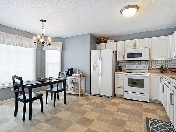 There are lots of reasons to fall in love with this ranch! At just under 1,300 square feet, this home offers a very functional floorplan with three bedrooms, two full bathrooms and several updates! From the start, you'll notice a new vinyl plank floor throughout the living room, hallway and two bedrooms. The living room is very spacious offering a double tray ceiling and a beautiful, stacked stone surround fireplace. The eat-in kitchen offers all white cabinets with newer hardware and appliances which are included in the sale. A modern hexagon style tile backsplash really makes the kitchen pop! Down the hallway you'll find the master suite, two bedrooms and a gorgeous main bathroom. Ready to be "wowed?" Look inside the main bathroom to find a glass enclosed tiled shower and pedestal sink! The master suite is large enough for any bedroom set and offers a walk-in closet and full bathroom! Out the back of the home you'll find a three seasons room with new indoor/outdoor carpet and a huge fenced in backyard with a firepit. The whole home has been freshly painted and is MOVE-IN-READY!! Don't delay as this home won't last long!