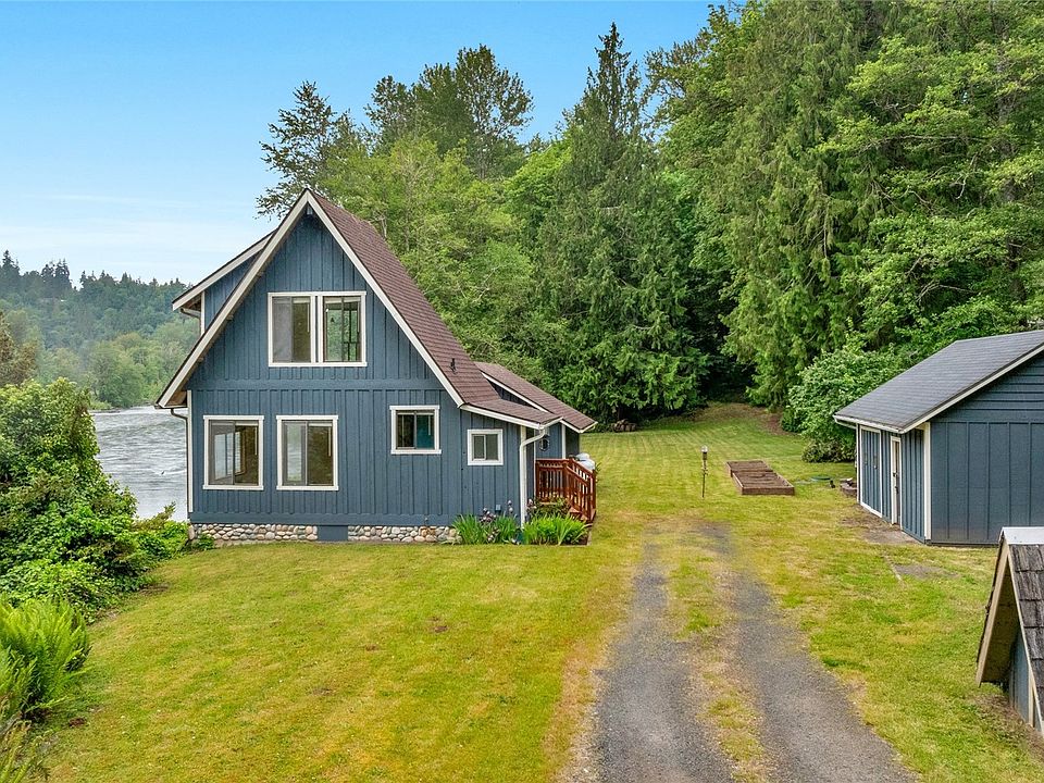 A beautiful and private oasis with over 1,200 lf of Stillaguamish riverfront! Hidden off of Jordan Rd and sitting on 3.42 acres, this home rests on the high bank along the river where you can enjoy uninterrupted views and tranquility morning, noon and night. The home layout has an open concept w/generous light on main floor and a large upper room w/vaulted ceilings that can serve as second bedroom, office space or studio. The land and infrastructure present innumerable options with a 3-bedroom septic, RV hookups, a detached 432 sq. ft wired shop, massive wrap around deck & tons of open/level land for additional recreation or income opportunity. Great river activity, fishing, trails and an additional tax parcel to the West. A rare gem!
