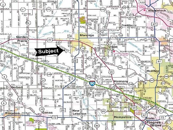 Location: The subject farm is located approximately 40 miles northwest of Chicago O'Hare International Airport. Nearby towns include: Marengo (1/2 mile east), Hampshire (7 3/4 miles southeast), Genoa (8 miles southwest), and Huntley (10 miles east). Frontage: There is approximately 5/16 mile of road frontage on Pleasant Grove Road. Major Highways: Illinois Route 23 is 1 mile southeast, U.S. Route 20 is 1 1/4 miles north, Illinois, Interstate 90 is 2 1/4 miles southwest, Illinois Route 176 is 2 5/16 miles northeast of the property. Legal Description: A brief legal description indicates The Gober Farm is located in Part of the Southwest Quarter of Section 3 and Part of the Northwest Quarter of Section 10, Township 43 North - Range 5 East (Riley Township), McHenry County, Illinois. Total Acres: There are a total of 99.72 acres, more or less, according to the McHenry County Assessor's Office. Tillable Acres: There are 100.15 cropland acres, according to the Farm Service Agency. Soil Types: Major soil types found on this farm include Lahoguess loam and Lorenzo loam. Topography: The topography of the subject farm is level to nearly level.Price and Terms: The asking price is $8,400 per acre. The owners are seeking a cash sale. A 10% earnest money deposit should accompany any offer to purchase. Financing: Mortgage financing is available from several sources. Names and addresses will be provided upon request. Taxes: The 2014 taxes totaled $1,396.28. The tax parcel numbers are #16-03-300-008 and #16-10-100-002. Grain Markets: There are a number of grain markets located within 15 miles of The Gober Farm. Zoning: The Gober Farm is zoned A-1, Agricultural. Comments: The Gober Farm is a well located, high percentage tillable farm.