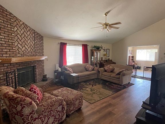 Cute home located at the end of Cul de sac. Large property with a large tree out back.Double entry doors, ?vinyl plank type flooring. Large open living room with huge brick fireplace.The Kitchen has granite? tile? squares for counters and plenty of cabinet space.The Dining area is off the kitchen. There is a den area off of the garage that has a door that leads to the garage for the laundry area. 3 bedrooms all good size. Guest bath has two sinks and shower is tile with a tub. The main bath has two sinks and a roll in type shower with handrails. The main bedroom has cobalt ceilings and wide wood window ledges in all bedrooms.--