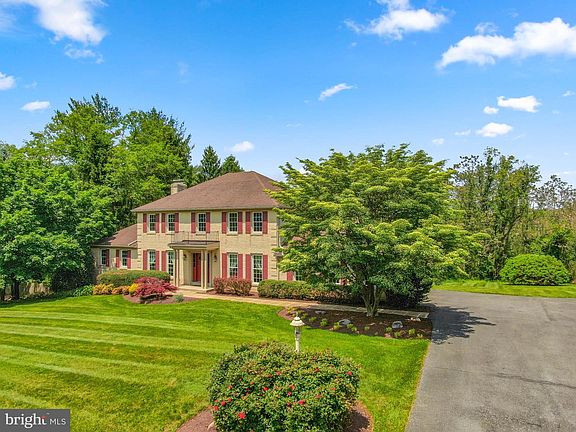 This beautiful stately colonial home sits on 1.6 acres, perfect for a nature lover! The freshly painted foyer with slate tiled floor opens to the living room and dining room. At the rear of the house you will find a totally remodeled kitchen with custom built maple cabinets, premium granite counters, large two-level island with cooktop, double wall ovens, double composite sink (Black Blanco) and a recycle drawer! There is recessed lighting and a beautiful separate glass fronted cabinet area with granite counters. The fabulous family room features a beamed ceiling, pegged hardwood floor, wood burning fireplace with a slate hearth. One wall is covered with beautiful mature real wood paneling. Anderson sliding doors lead to a two-level deck. Double doors from the family room open into a large office with a continuation of the pegged hardwood floor and wood paneled wall. A very spacious dining room has hardwood floors, chair rail and crown molding. The living room also has hardwood floors and opens to a sunroom/den area with a bank of windows overlooking your nature paradise. A convenient laundry room completes this level with tiled floor and a utility sink Hardwood stairs lead to the upper level, which has been freshly painted and carpeted. Here there are 4 good sized bedrooms. One is currently used as a 2nd office but could be a great nursery with its double doors off the master bedroom. The master bathroom has a double vanity, a large soaking tub, and linen closet. The hall bath has a tub, double vanities and 2 linen closets. The unfinished basement is very spacious and walks out to the beautiful backyard. There is a workshop room where some tools can be conveyed to the new buyer if desired. The oversized side-load garage houses a couple of lawn tractors as well as room for 2 vehicles. Additionally, you can park multiple cars on the driveway. Approximately 1/3rd of the lot is natural woods where an abundance of wildlife lives. Open Saturday 21st May between 12-2pm.