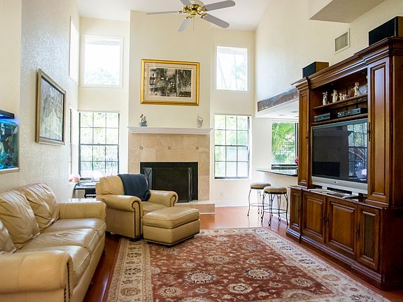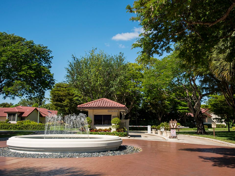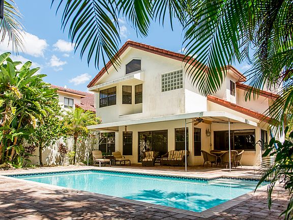 Beautiful home in one of the most desirable gated communities located in the heart of Boca Raton. This two story 4 bedroom home has high ceilings, granite kitchen tops, adjoining family room living room with fireplace, granite bar with sink and mini frig., quality finishing touches. Situated on an oversized corner lot with a gated court yard entrance. Lovely pool, large covered patio. A rated schools Verde, Omni and Spanish River.