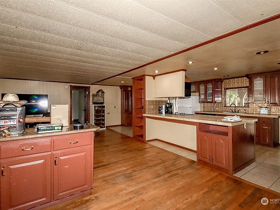 Discover this beautiful property offers a perfect blend of natural beauty and functional space. Fully fenced property features greenery, trees & sprawling landscapes. Includes several outbuildings, including a stable previously used for horses and chicken coop—ideal for those seeking a rural lifestyle or hobbyist. Add't buildings that can be utilized for various purposes. Guest bdrm complemented by separate 3/4 bath and private entry. Stunning custom Tuscany brushed stone countertops. Hardwood and LVP in the main living. No CCR's. This unique property is sold as-is, offering you the opportunity to make it your own. Home has Bonnieville Power easements on the property. Septic in need of repair estimated cost to fix $5K. Unpermitted add ons.