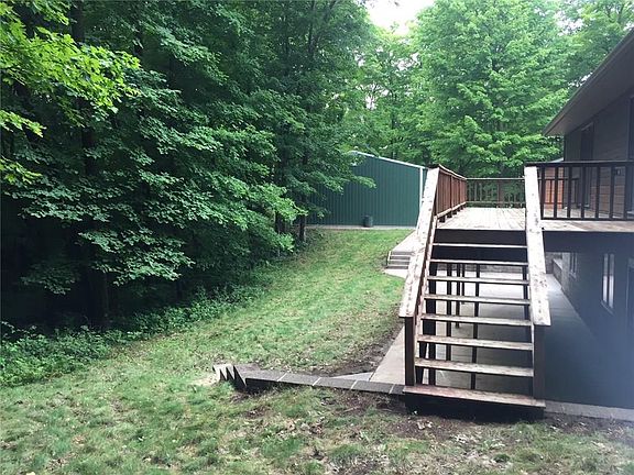 Enjoy Spirit Lake views from your cedar getaway in the woods! Right around the corner is public access to Spirit Lake for swimming, fishing, or just taking in the scenery. Impeccable Vaulted Pine cabin/home, 2+ heated garage, playhouse/shed with loft, and over-sized pole barn. Cabin boasts flowing design from pine cabinets w/tile, custom pine throughout, ash(3 types) flooring, Andersen windows, wood stove, pine doors, Jacuzzi tub, log railings to w/o finished basement with gas stove fireplace.