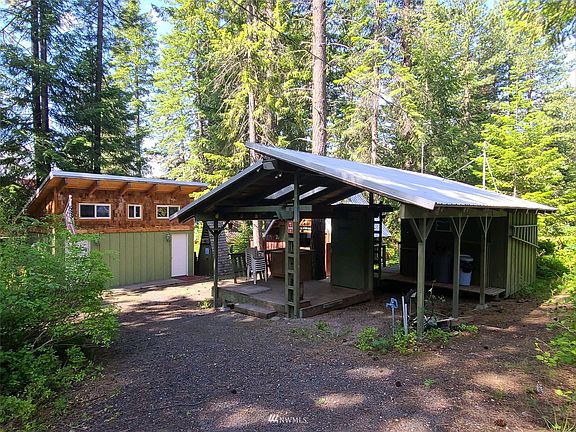 One-of-a-kind vacation/hunters cabin just 2 miles from downtown Plain, WA. This property includes a primary cabin, bunkhouse, and bath house with attached utility room. Sitting deck off the primary cabin and spacious covered deck off the bunkhouse. Carport for a small RV or extra vehicles. Located in the beautiful Pondarosa community, it offers a community pool, playground and private beach access to the Wenatchee River. Just 16 miles to Leavenworth and 31 miles to Stevens Pass Ski Resort. Come see this amazing vacation spot!