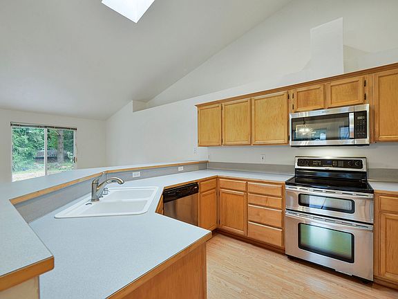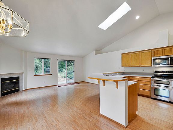 This charming 3 bed/ 2 bath house features a light filled, open floor plan with large living spaces. The beautiful kitchen has stainless appliances, oak cabinetry and pantry closet, a breakfast bar, skylight for sunny light and flows nicely into the dining area and family room. The family room features a cozy fireplace and is the perfect spot for evenings at home. Step through the patio door into the patio area and the green oasis that is the back and side yards. The 3 large bedrooms all feature generous closets including walk in closet for the primary bedroom and large picture windows. There is a full size washer/dryer in the laundry room. The 2 car garage provide additinal storgage space. Located on a quiet residential street with a charming, landscaped front yard. Close to all Maple Valley ammenities including minutes hwy 18, shopping, restaurants and schools. Great commuter locations. We do not accept applications sight unseen.