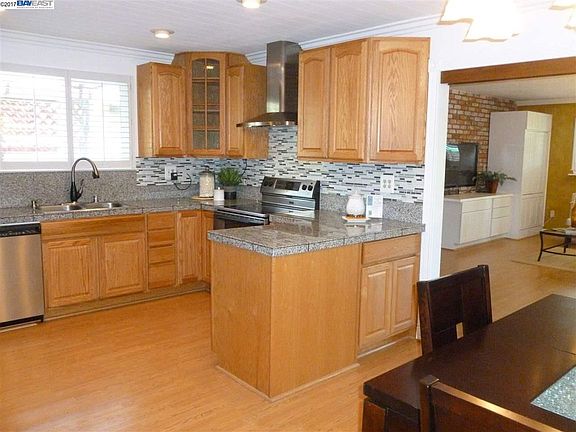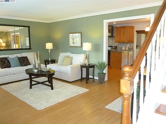 This Parkmont gem is ready for you! Featuring crown molding, remodeled granite kitchen with custom backsplash and stainless steel appliances (including the refrigerator), updated baths and a massive Great Room with custom cabinets/shelving, solar skylights and a pellet stove. Energy efficient dual pane windows, solar attic fan and the washer/dryer are also included. There are two bedrooms downstairs and two bedrooms upstairs. Enjoy the air conditioning on these hot summer days. Entertain in the backyard with a built-in gas BBQ and refrigerator, then sit around the raised gas firepit. Low maintenance artificial grass finishes the space. On one side of the house there are two storage sheds and on the other side is a space for a small boat or camper. GREAT Fremont schools surround the Parkmont area.