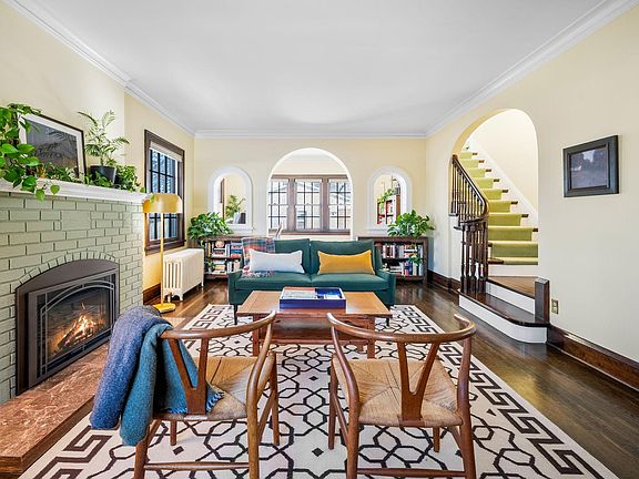 This Fairytale Tudor in Macalester-Groveland, just steps from the Mississippi River, is ready for its next stewards! Lovingly preserved & updated with elegant details, like coved plaster ceilings & arched french doors, natural woodwork & refinished hardwood floors, & updates like new high efficiency heating & cooling, this home is both inspiring & comfortable. The main level with its great original layout, contains a smart double door vestibule, an inviting living room with a handsome brick fireplace, a flexible sunroom & classic formal dining room. The spacious & sun filled kitchen dazzles with its granite countertops, stainless appliances & a cozy breakfast nook. At the top of the stairs you'll find 3 generous bedrooms & a renovated Art-Deco Bathroom & balcony overlooking the professionally landscaped private backyard with brick paver patio, beautiful perennials & an oversized 2 car garage. With a finished lower level family room & bathroom, this exquisite home is truly a must see!