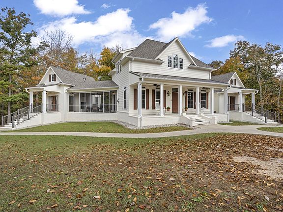 Discover luxury and comfort in this custom-built masterpiece nestled on 20 acres of picturesque land. Inside, an open floor plan featuring two private main suites, each with well-appointed bathrooms bathed in natural light and elegant finishes, offers ample space and privacy. A gourmet kitchen equipped with a large island and custom cabinetry awaits, perfect for culinary enthusiasts. Durable bamboo flooring adds a touch of elegance throughout. - Outside, enjoy the tranquility of your private screened-in porch, complete with an outdoor fireplace. The expansive rear deck overlooks a beautifully and relaxing fenced-in tree-covered yard. There's also a relaxing hot tub for ultimate relaxation. A detached shop with a full apartment provides versatile options for guests or a creative workspace. With reliable Generac Generators in both the home and shop, you'll enjoy peace of mind in your woodland haven.
